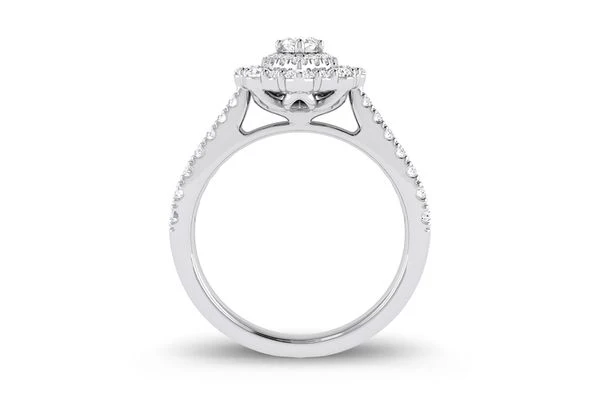 1.25ct Diamond Marquise Double Halo Scalloped All Natural Engagement Ring 14K White Gold