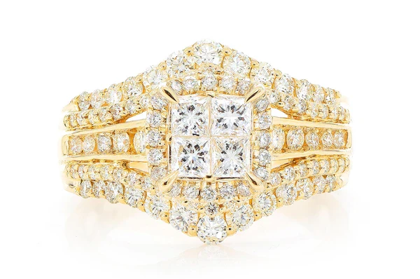 2.00ct Diamond Quad Halo 5 Row Band All Natural Engagement Ring 14K Solid Gold