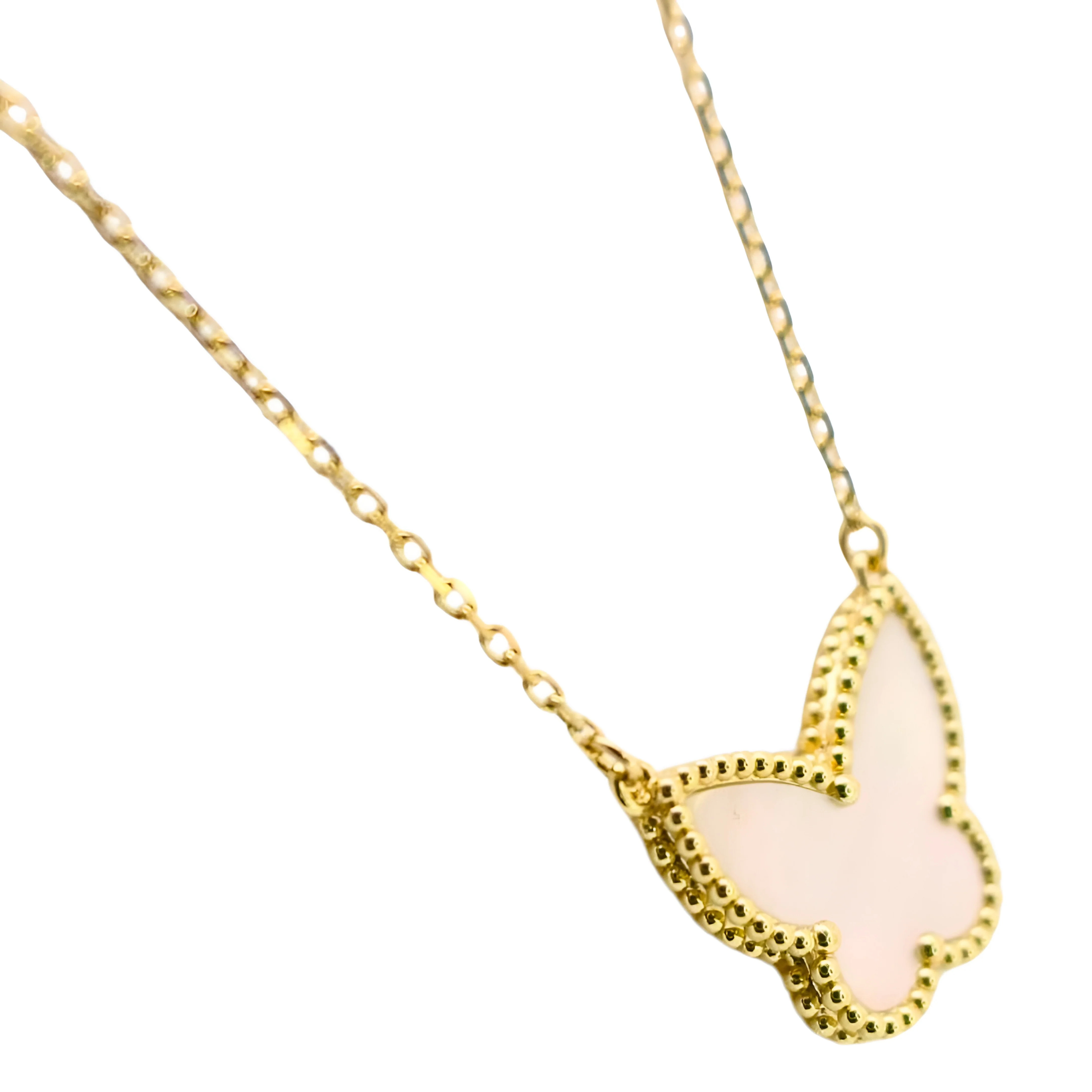 Van Cleef & Arpels Lucky Vintage Alhambra Butterfly Pendant White Mother-Of-Pearl Butterfly 18K Yellow Gold