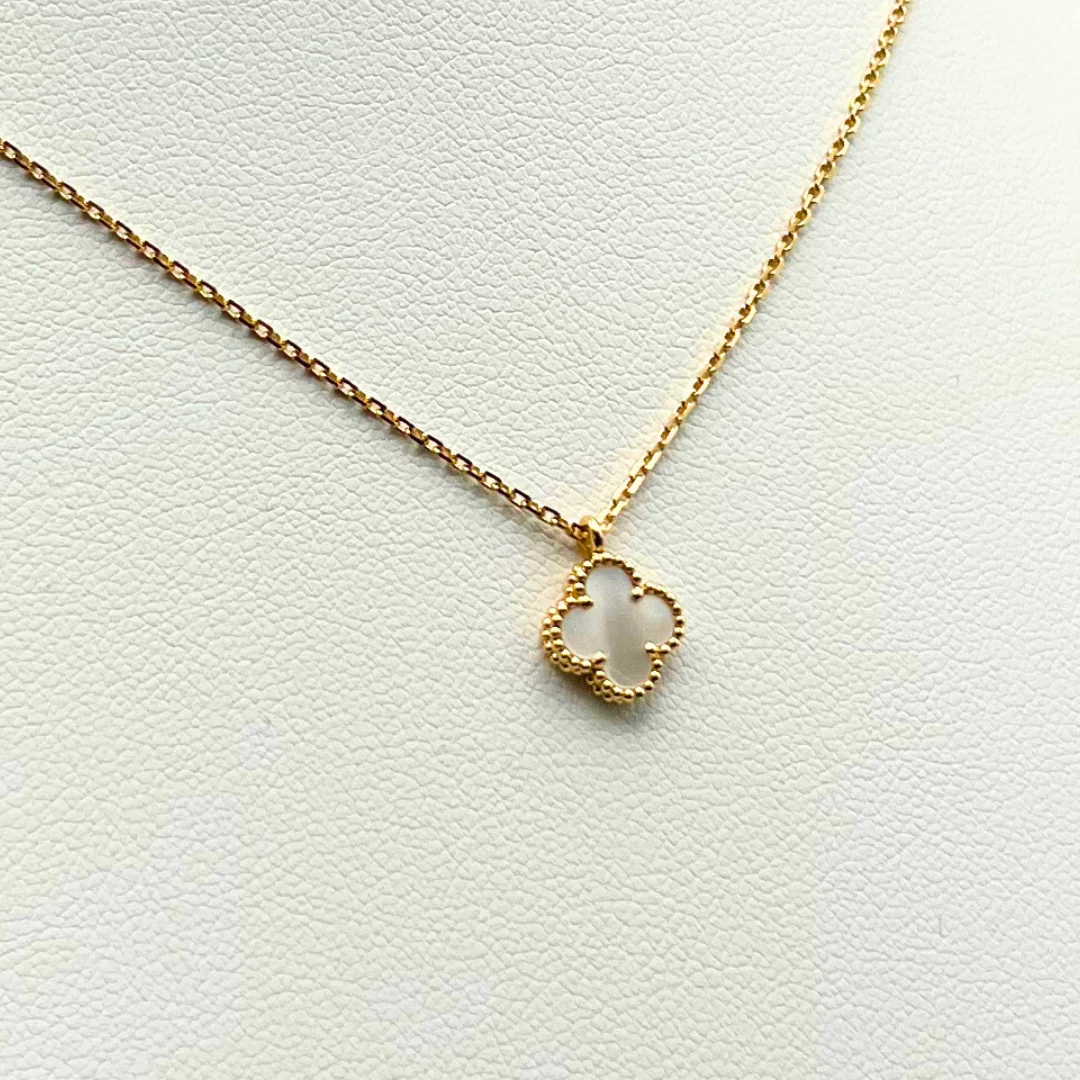 This Van Cleef & Arpels Sweet Alhambra Pendant Mother-Of-Pearl 18K Yellow Gold is made of solid 18K Yellow Gold & Natural Mother-Of-Pearl Fragment.