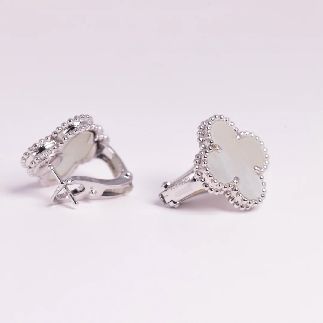 Van Cleef & Arpels Vintage Alhambra Earrings Mother-Of-Pearl 18K White Gold